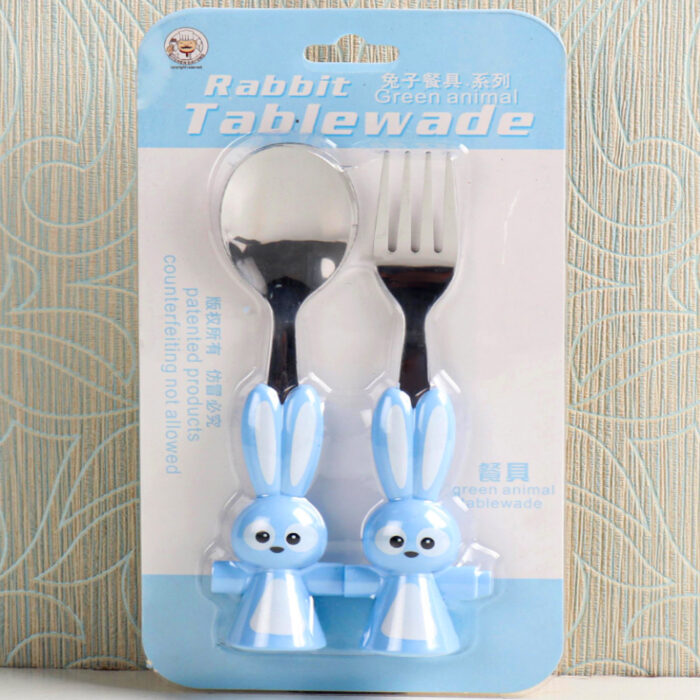 Bunny Shaped Stainless Steel Fork & Spoon Set – Blue
