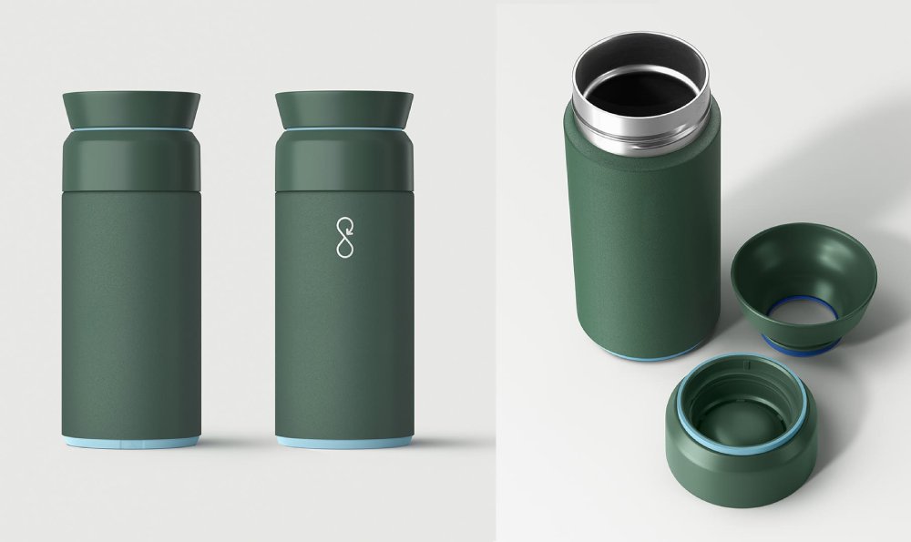 - Red Dot Design award-winning Ocean Bottle BREW keeps cold drinks cold, and hot drinks hot. Made from double wall vacuum-insulated stainless steel and recycled content. The anti-leak dual opening lid makes filling and cleaning a breeze. Plus, unlike most reusable bottles, Ocean Bottle is 100% dishwasher safe.