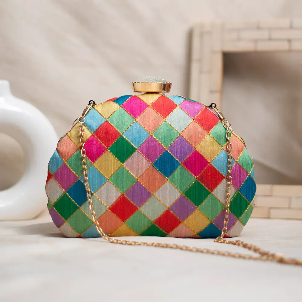 D-Shaped Brocade Fabric Clutch Bag – Multicolor