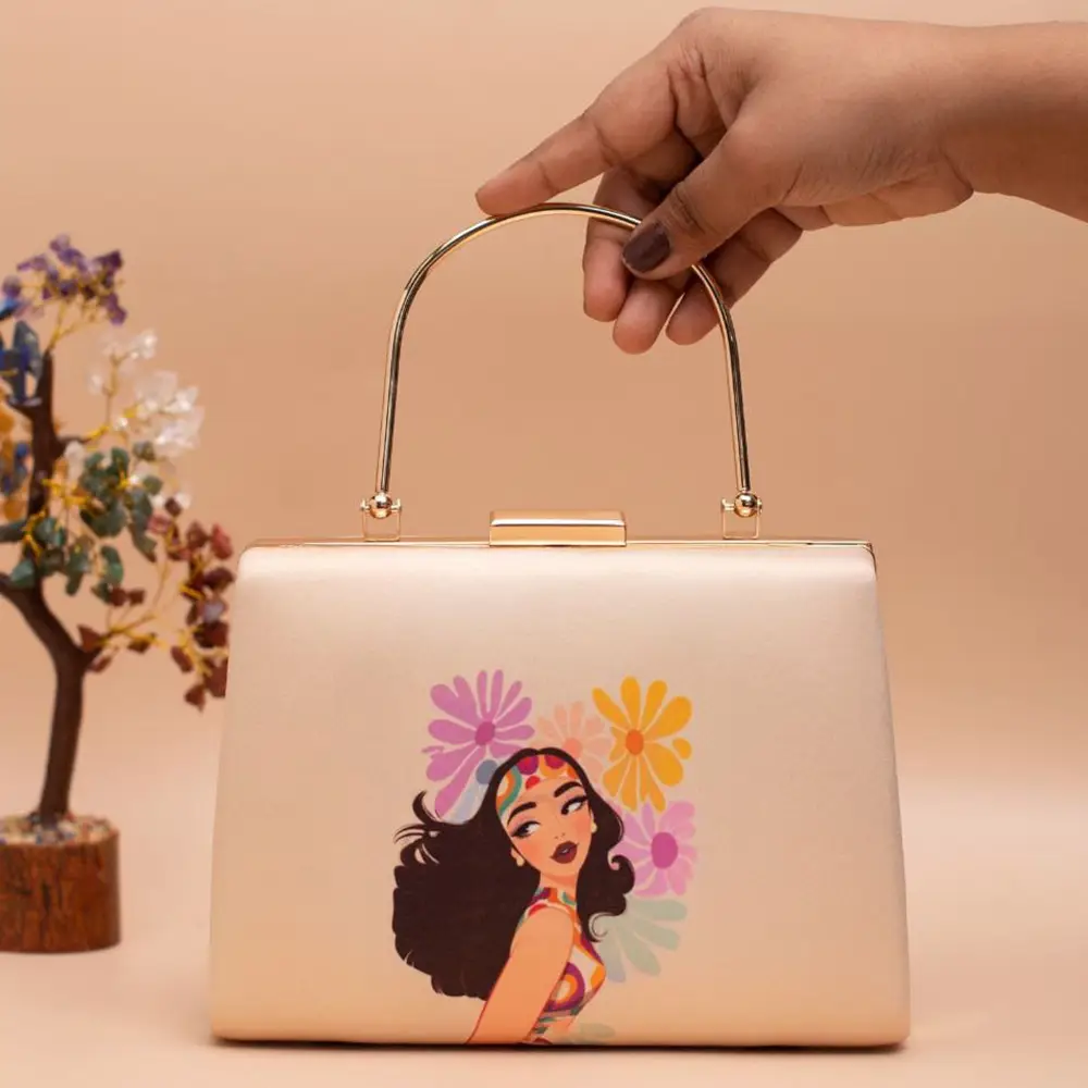 Digital Print Clutch Bag – Beige