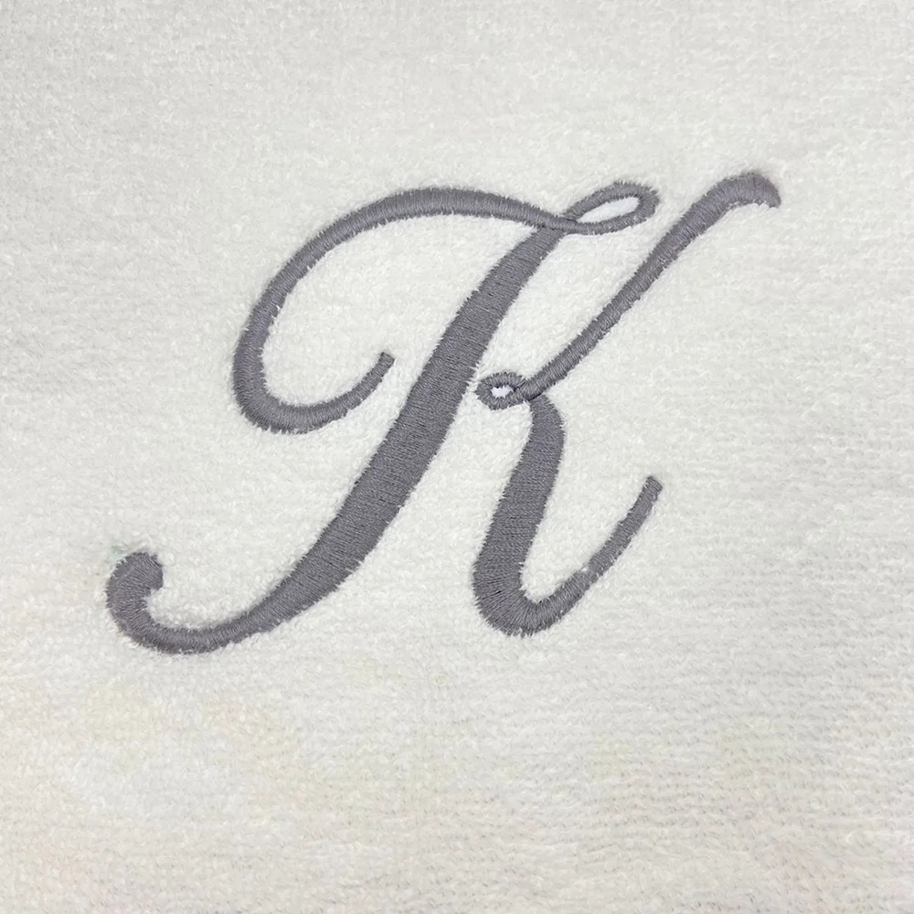 Iris Embroidered For You Bath Towel 70 x 140 Cm 600 Gsm White 100% Cotton Letter “K” Silver Thread Set of 01