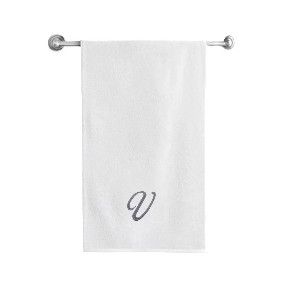 Iris Embroidered For You Bath Towel 70 x 140 Cm 600 Gsm White 100% Cotton Letter “V” Silver Thread Set of 01