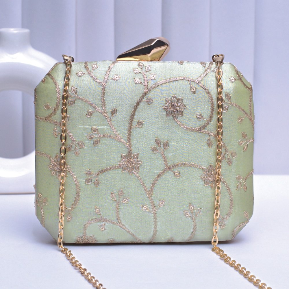 Be the first to review “Pastel Green Square Shape Ethnic Clutch Bag” Cancel reply