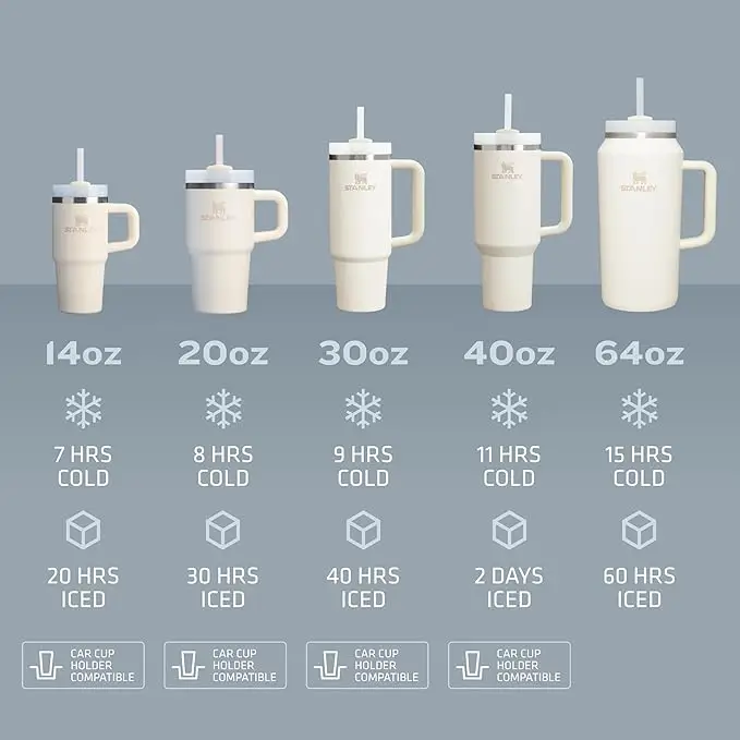 - YOUR DREAM TUMBLER: Whichever way your day flows, the H2.0 FlowState tumbler keeps you refreshed with fewer refills. Double wall vacuum insulation means drinks stay cold, iced or hot for hours. Choose between our 14oz, 20oz, 30oz,40oz and 64oz options depending on your hydration needs. The narrow base on all sizes (except 64oz) fits just about any car cup holder, keeping it right by your side.